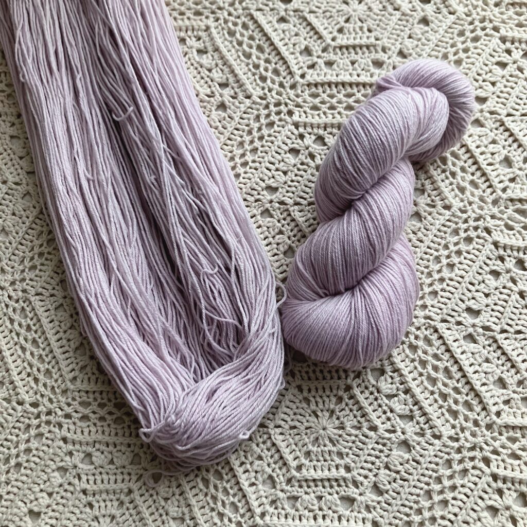 ■使用糸:【草木染め糸】スーパーウォッシュソック(淡藤色) | 手編み雑貨の編み図&キット ATELIER *mati*