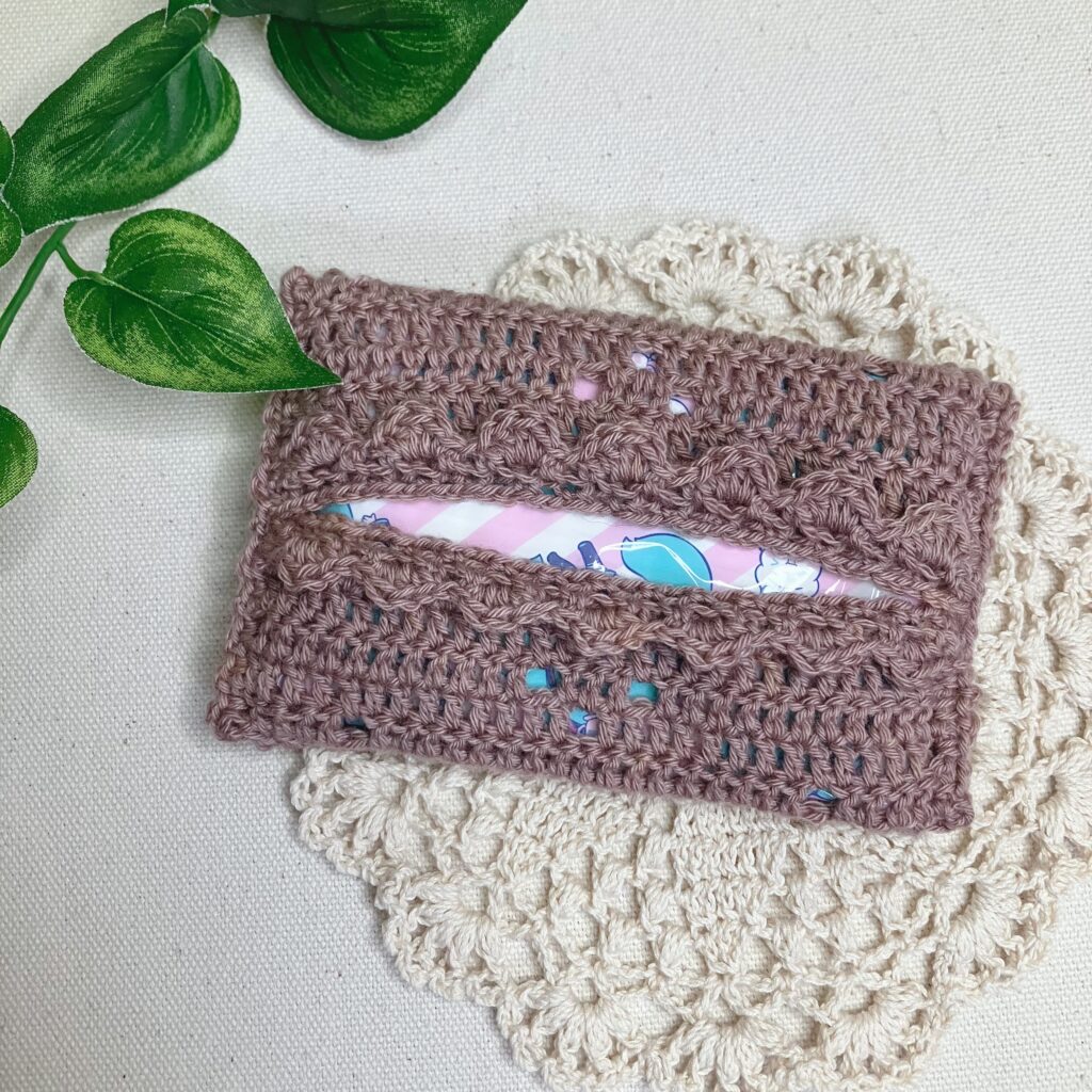 透かし模様といっても難しいものではなく、長編みと鎖編みだけで作るシンプルで簡単な小花模様を入れています。