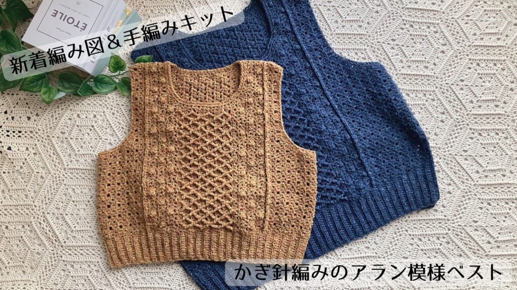【手編みキット】かぎ針編みのアラン模様ベスト(大人サイズ) | 手編み雑貨の編み図&キット ATELIER *mati*