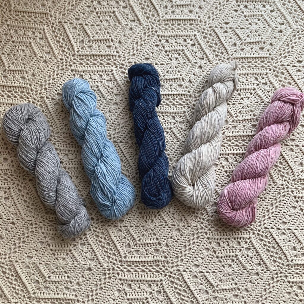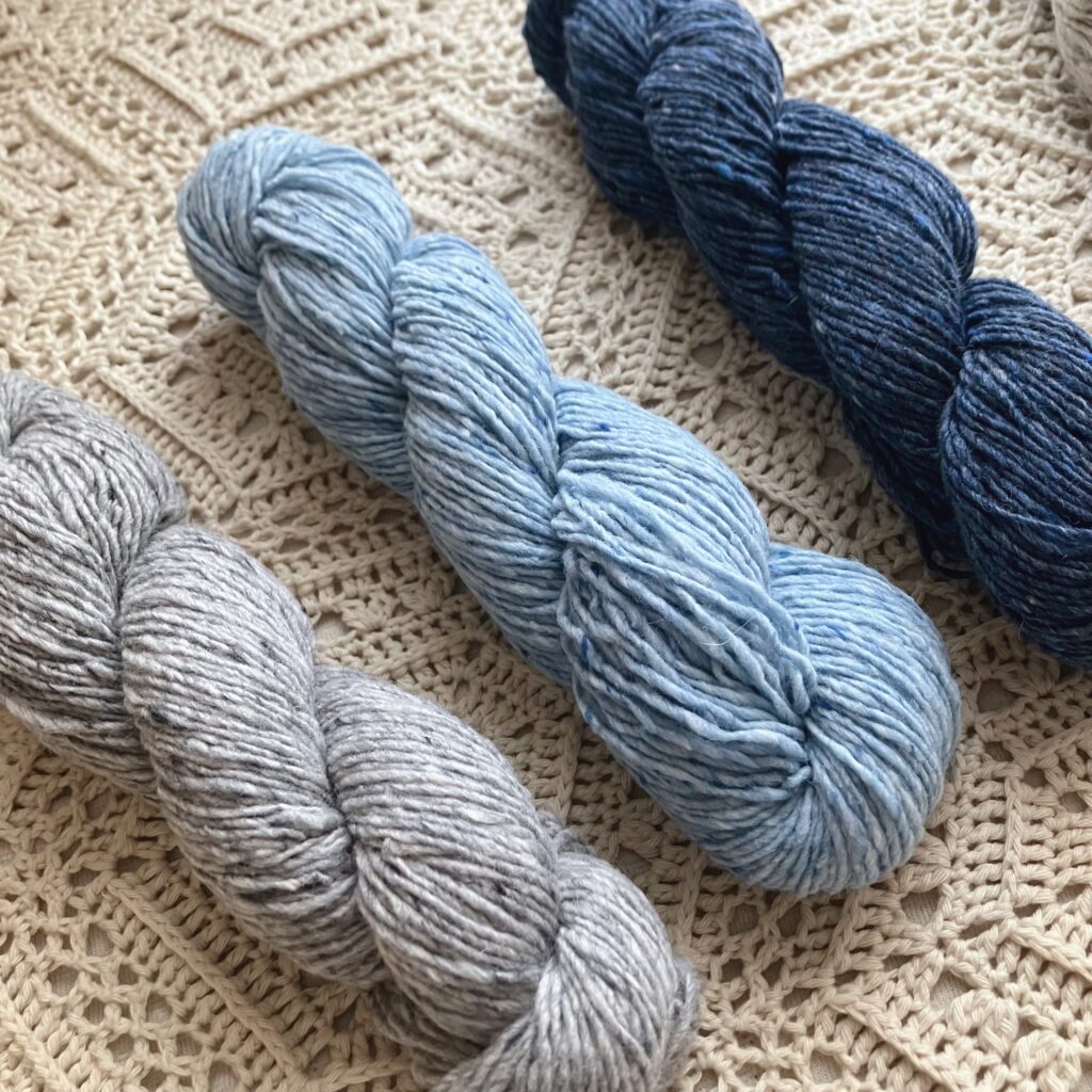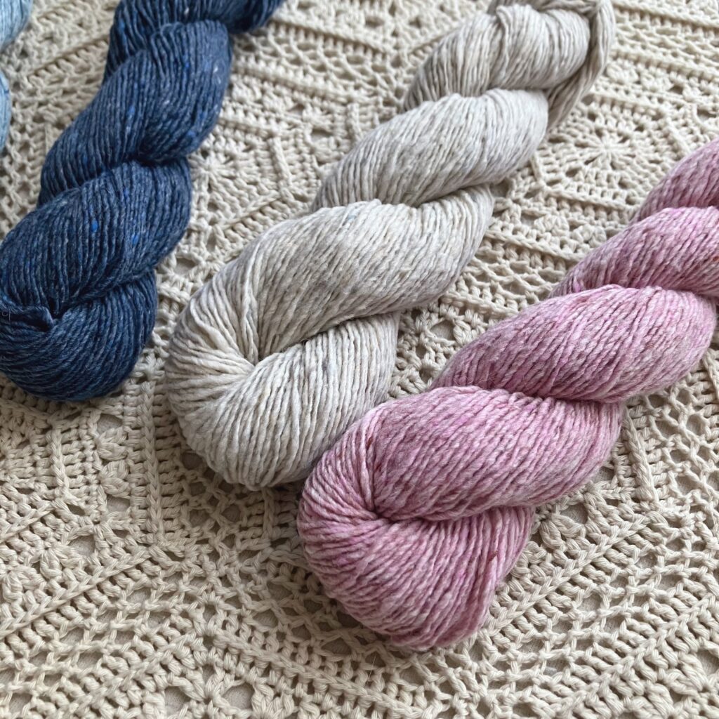 ■使用糸:【手編み糸】手紡ぎ風メリノツイード | 手編み雑貨の編み図&キット ATELIER *mati*